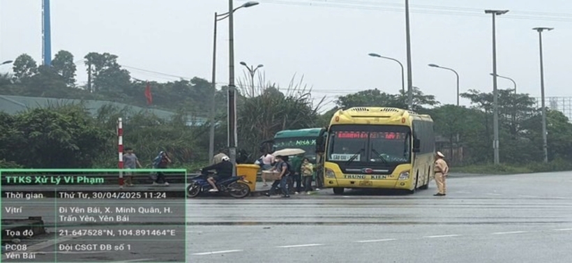 Khoảng 11h25 cùng ngày, phát hiện 1 xe ô tô chở khách 40 chỗ mang BKS 24B-005.XX đang đỗ xe cho hành khách xuống tại khu vực trước trạm thu phí IC12 hướng Hà Nội đi Lào Cai sai quy định, có dấu hiệu nhồi nhét khách.