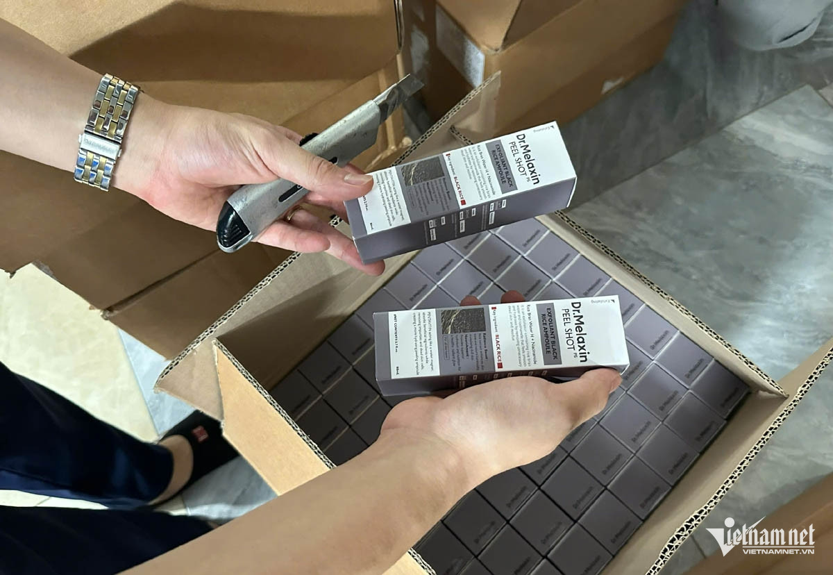 Tại đây, lực lượng chức năng phát hiện 5.400 sản phẩm mỹ phẩm nhập lậu, không có hóa đơn, chứng từ hợp lệ. Trong số này gồm: 2.520 lọ tinh chất dưỡng daDr.Melaxin Peel Shot exfoliant rice ampoule (80ml/lọ, xuất xứ Hàn Quốc). 2.880 lọ tinh chất dưỡng daDr.Melaxin Peel Shot exfoliant black rice ampoule (80ml/lọ, xuất xứ Hàn Quốc). Tổng giá trị hàng hóa vi phạm theo giá niêm yết lên tới hơn 2,1 tỷ đồng.