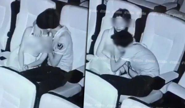 Bỏng mắt cô gái thản nhiên lột đồ làm chuyện ấy với bạn trai trong rạp chiếu phim-3 Thêm trường hợp thản nhiên ôm hôn, sờ soạng nhau trong rạp chiếu phim như chỗ không người. Cặp đôi này đến từ Thái Lan.