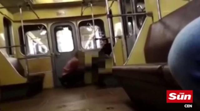 Theo đoạn clip được một nhân chứng ghi lại, một người phụ nữ tóc vàng, mặc áo đỏ và quần đen đang quỳ xuống giữa hai chân người đàn ông để làm “chuyện ấy”. Trong khi đó, người đàn ông một tay giữ lấy chiếc túi xách để che đi phần nhạy cảm. Họ thoải mái “tận hưởng” như đang ở nhà mình chứ không phải ở trên tàu.